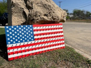 Wood Challenge Coin Display measures 37 inches wide and 19 inches high gives you 6 shelves to display your challenge coin collection in a Patriotic way. Choose between bright colors, or a distressed look.